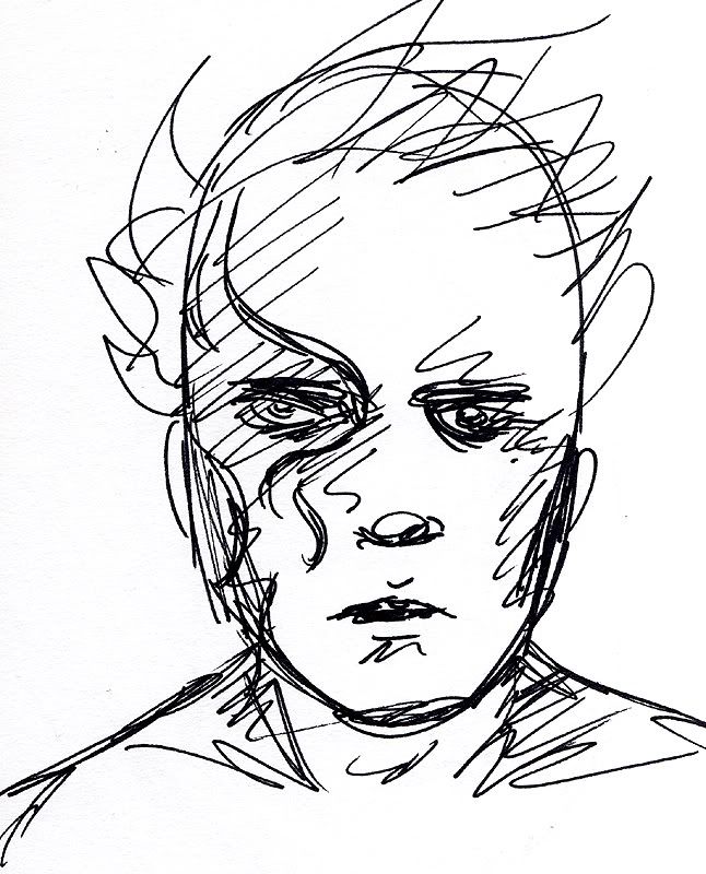 Not amazing, and one of the guys in the bg looks like he's on the toilet, but I think I'm going to work with the concept for a larger drawing maybe...